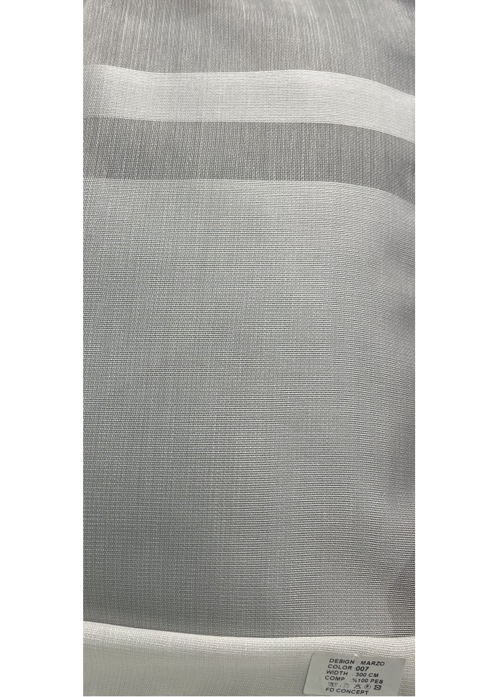 Zarif çizgileri ve detaylı dokusuyla öne çıkan Marzo desenli tül kumaş, etek kısmındaki şerit yol detaylarıyla modern ve dekoratif bir görünüm sunar. %100 polyester yapısıyla hafif, dayanıklı ve kolay temizlenebilir olan bu tül, hem estetik hem de fonksiyonel bir kullanım sağlar.